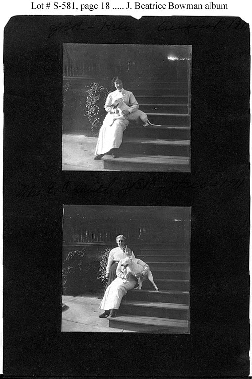 Left: Page 18 To left of left photo -- "JBB Helo August 1911". Between photos -- "Mrs. E.C. Smith -- JBB -- Helo -- 1911". Right: Page 19 To left of left photo -- "JBB -- Helo -- Aug 1911" Between photos -- "Miss Patterson -- Helo -- Aug 1911" |