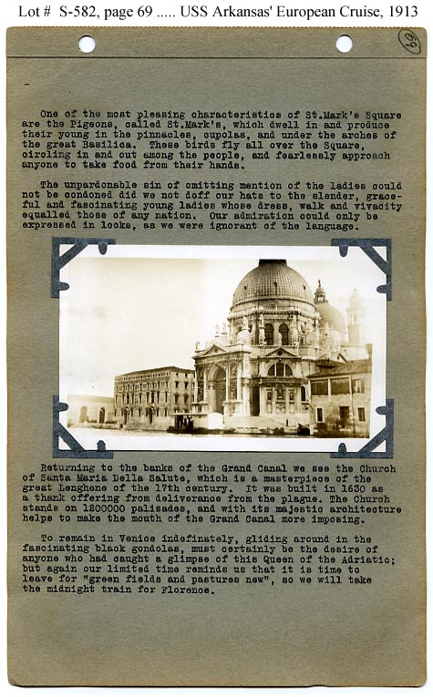 This page provides textual information, thumbnails, and links to larger images concerning pages 60 through 69 of a photo album covering USS Arkansas' visit to the Mediterranean in October-December 1913.