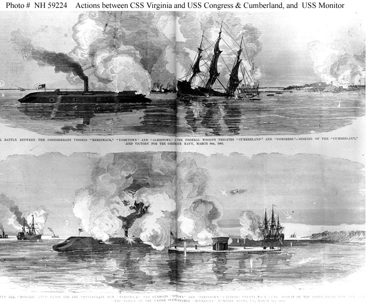 This page features images of the battle between CSS Virginia and the Federal warships Cumberland and Congress, 8 March 1862.