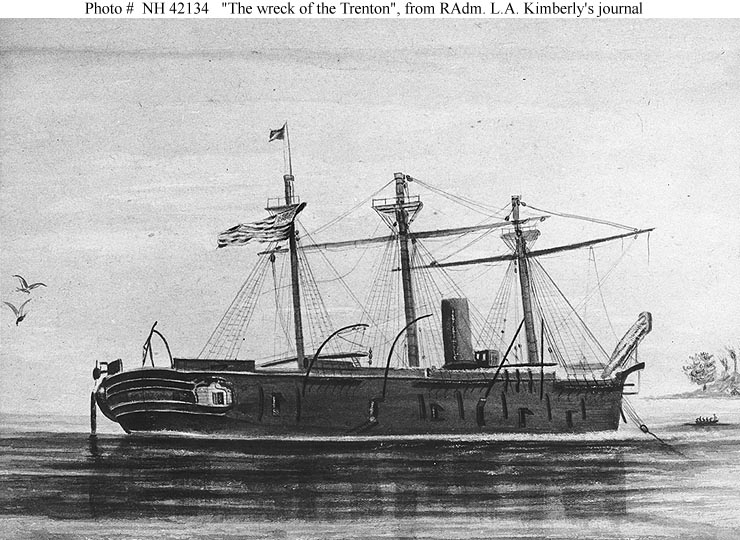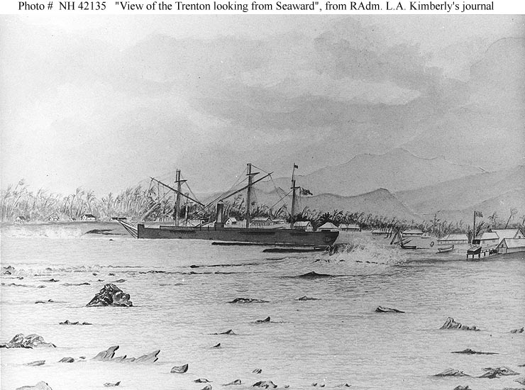 journal of the Apia Hurricane. It shows USS Trenton shortly