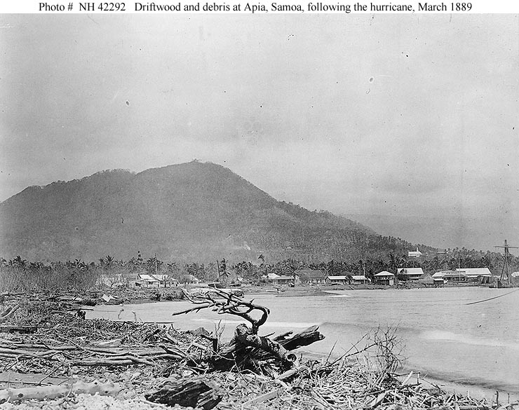This page features, or provides links to, all the views we have related to the Apia, Samoa, hurricane of 15-16 March 1889.