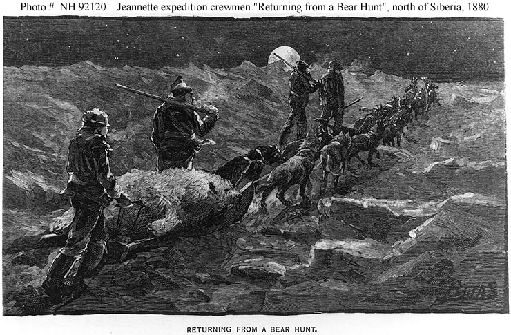 From 1879-1881 thirty-three Navy officers, enlisted men and civilians, led by Lieutenant Commander George Washington DeLong, participated in an epic Arctic adventure that defines the limits of human will and endurance in an overwhelmingly distant and hostile environment. The undertaking began optimistically on 8 July 1879, when the Navy operated, but privately owned, steamer Jeannette left San Francisco, California, for an attempt to reach the North Pole through what was then believed to be open water beyond the Arctic icepack. The ship entered the ice to the east of Wrangell Island on 6 September and, as expected, was held fast within a few days.