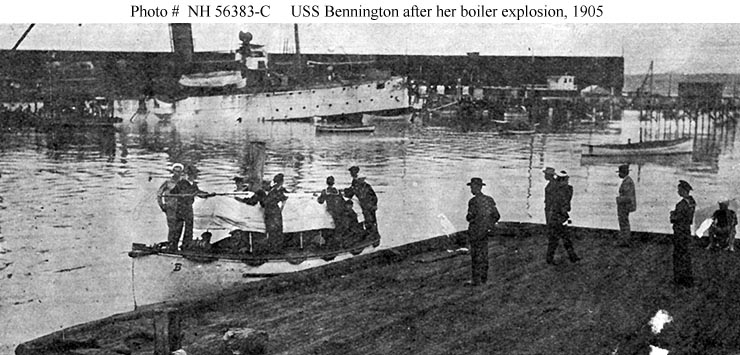 This page features, and provides links to, all the views we have concerning the 21 July 1905 boiler explosion on USS Bennington (Gunboat # 4).