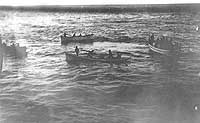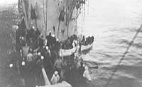 Photo #: NH 78342 Burning of French Transport Vinh-Long, 16 December 1922 Lifeboats pick up survivors of the burning ship, in the Sea of Marmora, Turkey, during the morning of 16 December 1922. The boat in the center appears to be largely swamped. Photographed from USS Bainbridge (DD-246). Donation of Frank A. Downey, 1973. U.S. Naval Historical Center Photograph. Online Image: 84KB; 740 x 480 pixels |
