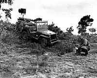 Photo #: NH 97049 Korean War Psychological Warfare "Harry Jieong, a South Korean, appeals to the Chinese Communists through a loud speaker of the 3rd Infantry Division Psychological Warfare Team working with the 1st Battalion, 15th RCT, close to the front lines. 12 February 1951." Quoted from the original photo caption. Official U.S. Army Photograph, from the "All Hands" collection at the Naval Historical Center. Online Image: 114KB; 740 x 620 pixels |