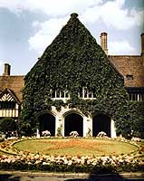 Photo #: 80-G-K-14539 (Color) Potsdam Conference, July-August 1945 Main entrance of the Cecilienhof Palace, where the Potsdam "Big Three" meetings were held. Flags of the USSR, United States and Great Britain are flying over the entranceway. Soviet officers are serving as guards. Photographed during the conference. Official U.S. Navy Photograph, now in the collections of the U.S. National Archives. Online Image: 148KB; 590 x 765 pixels Reproductions of this image may also be available through the National Archives photographic reproduction system. |