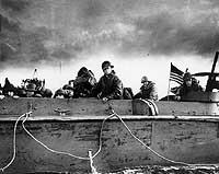 Photo #: 26-G-2349 Normandy Invasion, June 1944 Troops and crewmen aboard a Coast Guard manned LCVP as it approaches a Normandy beach on "D-Day", 6 June 1944. Photograph from the U.S. Coast Guard Collection in the U.S. National Archives. Online Image: 127KB; 740 x 615 pixels Reproductions of this image may also be available through the National Archives photographic reproduction system. |