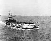 Photo #: 80-G-252719 Normandy Invasion, June 1944 British LCT(A)-2008 (operating under the U.S. flag) approaches one of the Normandy landing beaches with fresh U.S. Army troops, 7 June 1944. Official U.S. Navy Photograph, now in the collections of the National Archives. Online Image: 110KB; 740 x 615 pixels Reproductions of this image may also be available through the National Archives photographic reproduction system. |