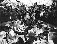 Photo #: 80-G-49458 USS Bullhead (SS-332) Church service in the submarine's after torpedo room. Taken during a Pacific war patrol, circa Spring 1945. Note the storage bags hung from berths above the torpedo loading racks, and the torpedo tube doors in the background. This photo was received by the Navy Photo Science Laboratory on 20 June 1945. It was taken by Stephen F. Birch. Official U.S. Navy Photograph, now in the collections of the National Archives. Online Image: 138KB; 740 x 600 pixels Reproductions of this image may also be available through the National Archives photographic reproduction system. |