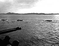 Photo #: 80-G-420038 Inchon Invasion, September 1950 LCVPs head for Red Beach during initial landings at Inchon, 15 September 1950. Photographed from USS Lyman K. Swenson (DD-729), which provided gunfire support for the Red Beach attack. Official U.S. Navy Photograph, now in the collections of the National Archives. Online Image: 138KB; 740 x 610 pixels Reproductions of this image may also be available through the National Archives photographic reproduction system. |