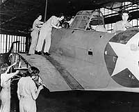 Photo #: 80-G-88211 Naval Air Station, Jacksonville, Florida WAVES Aviation Metalsmiths and Aviation Machinist's Mates (AMM) working on an SBD "Dauntless" aircraft in the air station's Assembly and Repair Department, 24 July 1943. Working on the wing, at left, are Seaman 1st Class (AMM) Annia Marie Garman and Seaman 1st Class Frances O. Culpepper. On and inside the plane are (left to right) AMM 3rd Class Audrey Anderson, AMM 3rd Class Jane Carlisle, AMM 3rd Class Betty Jo Visson, Seaman 1st Class Mary Jane Boring and Seaman 1st Class (AMM) Clara R. Bumgarner. Official U.S. Navy Photograph, now in the collections of the National Archives. Online Image: 97KB; 740 x 620 pixels Reproductions of this image may also be available through the National Archives photographic reproduction system. |