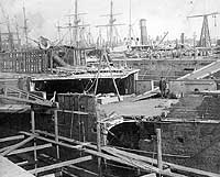 In drydock, probably at the New York Navy Yard in 1884 or 1885,