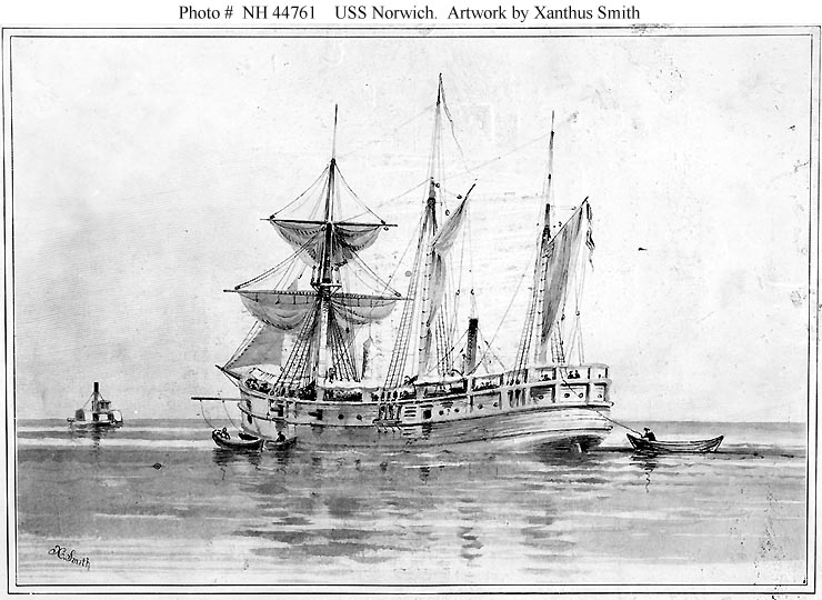 Photo #: NH 44761 USS Norwich (1861-1865) Artwork made during the Civil War by Xanthus Smith. U.S. Naval Historical Center Photograph. Online Image: 91KB; 740 x 540 pixels |