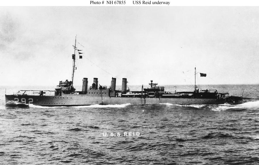 Photo #: NH 67855 USS Reid (DD-292) Underway, circa 1922-1930. Courtesy of Donald M. McPherson, 1969. U.S. Naval History and Heritage Command Photograph. Online Image: 82 KB; 900 x 575 pixels |