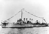 Dressed with flags following conversion to a light minelayer, circa 1920.