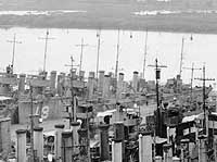 Photo #: NH 98604-B USS Preston (Destroyer # 19) With several other destroyers in the Philadelphia Navy Yard's Reserve Basin, circa spring 1919. Cropped from a panoramic photograph (Photo # NH 98604) taken by Keystone Photo Studios, 817 So. Broad St., Philadelphia. Collection of Eugene Bennett, donated by his daughter, Jene B. Hart, September 1988. U.S. Naval Historical Center Photograph. Online Image: 81KB; 740 x 575 pixels |