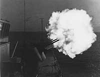 Fires her 6"/47 guns off the south coast of Vietnam, during a dusk bombardment, 7 August 1965.
