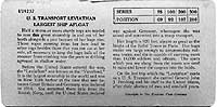 Photo #: NH 100305-B USS Leviathan (ID # 1326) Reverse side of a stereograph card published by the Keystone View Company. Donation of Louis Smaus, 1985 U.S. Naval Historical Center Photograph. Online Image: 86KB; 675 x 360 pixels For a view of the front of this stereograph card, see: Photo # NH 100305-A Online Image of stereo pair: 59KB; 675 x 360 pixels For a single frame copied from the original stereograph card, see Photo # NH 100305. |