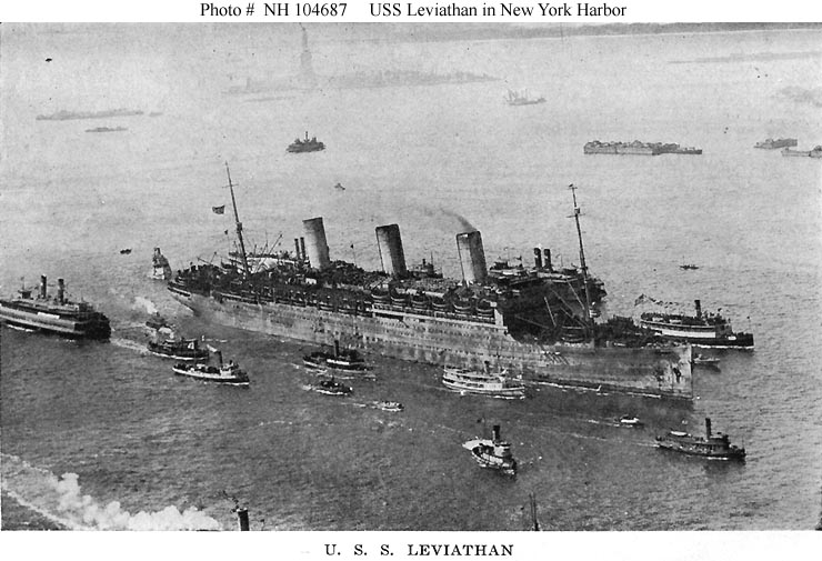 New York Harbor, probably in March 1919. The Statue of Liberty