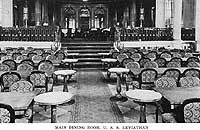 Halftone reproduction of a photograph of the ship's main dining