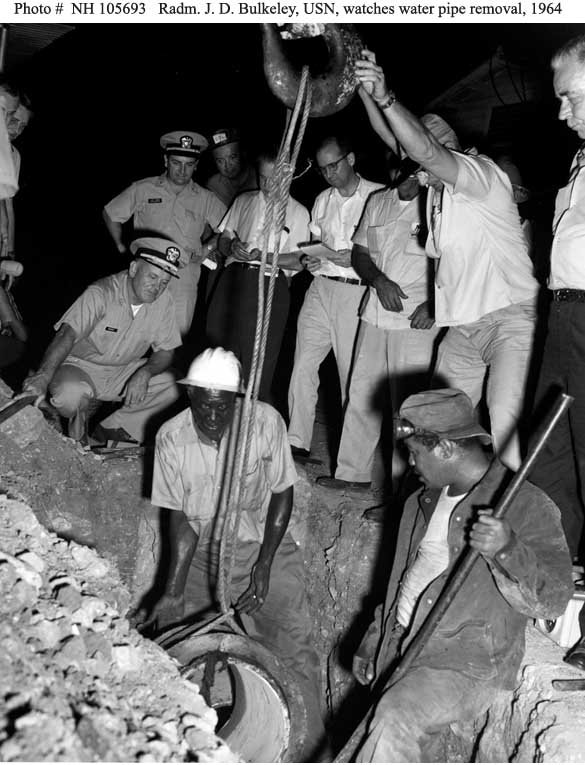 of the Naval Base, watches as a 38-inch section of 14-inch water