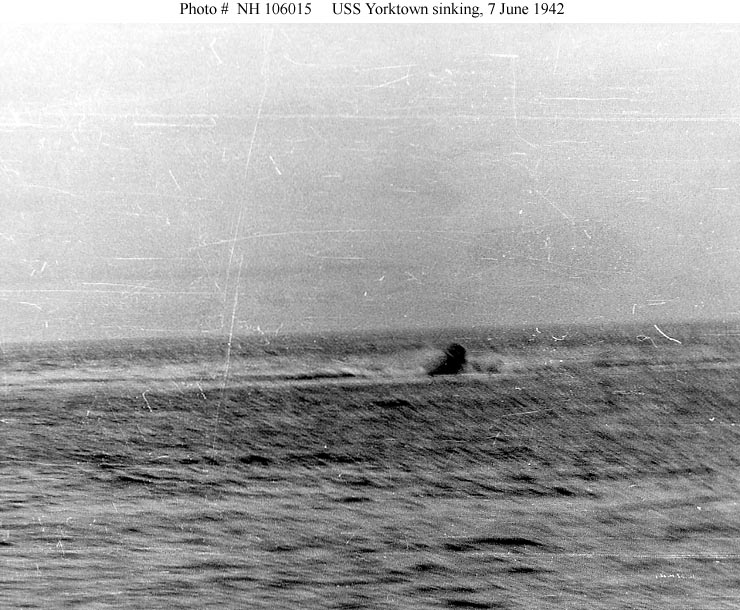 USS Yorktown (CV-5) sinking, just after dawn on 7 June