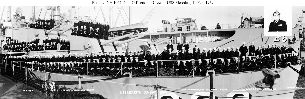 Meredith's Commanding Officer, Commander F.L. Lee, may be the officer whose portrait is vignetted in the upper right. Her Executive Officer was Lieutenant Commander K.G. Haynes.