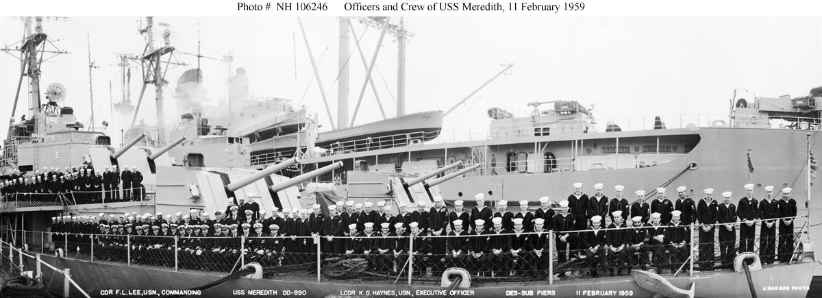 Meredith's Commanding Officer was Commander F.L. Lee. Her Executive Officer was Lieutenant Commander K.G. Haynes.
