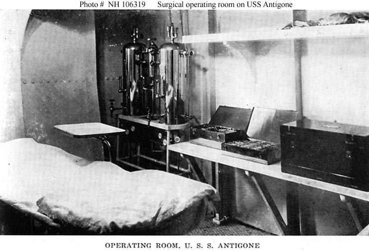 Halftone reproduction of a photograph taken in the ship's surgical operating room, circa 1918-1919.