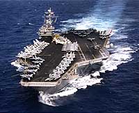 Underway during carrier airwing qualifications in the Northern Puerto Rican Operations Area, 10 December 1996.