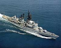 Letterpress reproduction of a photograph of the ship underway off the Virginia coast, circa the 1980s.