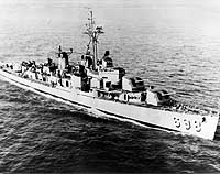 Underway, circa the mid-1950s, after being refitted with 3"/50 guns in place of her original 40mm guns.