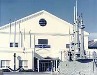 Photo #: KN-27604 (Color) Washington Navy Yard, Washington, D.C. Main entrance to the Navy Memorial Museum, circa Summer 1978. This entranceway, located between the building's two southern wings, was demolished and rebuilt to another design in 1981-1982. Note the three submarine periscopes located in the Museum's southwestern wing, and the old anchor mounted in front of that wing. Large metal plaque above the "Navy Memorial Museum" sign identifies the building's previous use, as the Naval Gun Factory's Breech Mechanism Shop. At right is the conning tower fairwater ("sail") of USS Balao (SS-285), which was relocated to another part of the Navy Yard in 1982 and again in about the year 2001. This photograph was received by the Naval Photographic Center in January 1979. Official U.S. Navy Photograph. Online Image: 99KB; 740 x 600 pixels Reproductions of this image may also be available through the National Archives photographic reproduction system as Photo # 428-KN-27604 |