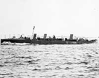 Photo #: 19-N-11295 USS Stockton (Torpedo Boat # 32) Underway during the early 1900s. Note the round identification shape carried on her foremast. Photograph from the Bureau of Ships Collection in the U.S. National Archives. Online Image: 81KB; 740 x 610 pixels Reproductions of this image may also be available through the National Archives photographic reproduction system. |