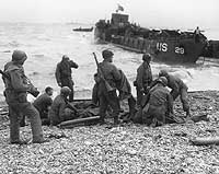 Photo #: SC 320870 Normandy Invasion, June 1944 U.S. Army troops administer first aid to the survivors of sunken landing craft, on "D-Day", 6 June 1944. USS LCT-29 is in the background. Note M1 rifles carried by some of these Soldiers. Photograph from the Army Signal Corps Collection in the U.S. National Archives. Online Image: 126KB; 740 x 615 pixels Reproductions of this image may also be available through the National Archives photographic reproduction system. |