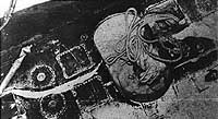 Photo #: USN 1136662 Wreck of USS Scorpion (SSN-589) Section of the sunken submarine's hull, on the Atlantic Ocean floor 10,000 feet deep, some 400 miles southwest of the Azores. Probably taken when Scorpion was located by USNS Mizar (T-AGOR-11) in October 1968. This image shows the top of the hull, aft of amidships. The large oval opening is the stowage bay for the messenger bouy. Also visible are circular ballast tank vents, two rectangular access hatches into the superstructure and damaged snorkel exhaust piping. The original photograph bears the date 30 January 1969. Official U.S. Navy Photograph. Online Image: 98KB; 740 x 430 pixels Reproductions of this image may also be available through the National Archives photographic reproduction system as Photo # 428-N-1136662. |