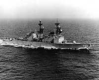 Photo #: USN 1162175 USS Spruance (DD-963) Underway in the Gulf of Mexico, during trials. Photograph was received in May 1975. Official U.S. Navy Photograph. Online Image: 126KB; 740 x 620 pixels Reproductions of this image may also be available through the National Archives photographic reproduction system as Photo # 428-N-1162175. |