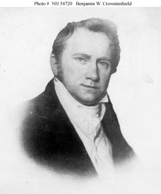 Benjamin William Crowninshield was born in Salem, Massachusetts, on 27 December 1772. Son of a sea captain and merchant, he worked in the family shipping business, served at sea, and was also active in politics. He was elected to the Massachusetts House of Representatives in 1811 and the state Senate in 1812.