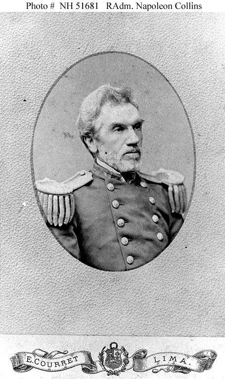 Napoleon Collins was born in Pennsylvania on 4 March 1814. He became a Midshipman in the United States Navy in January 1834. Promoted to the rank of Lieutenant in 1846, he took an active role in the war with Mexico. During the first years of the Civil War, he commanded several gunboats and attained the rank of Commander in July 1862.