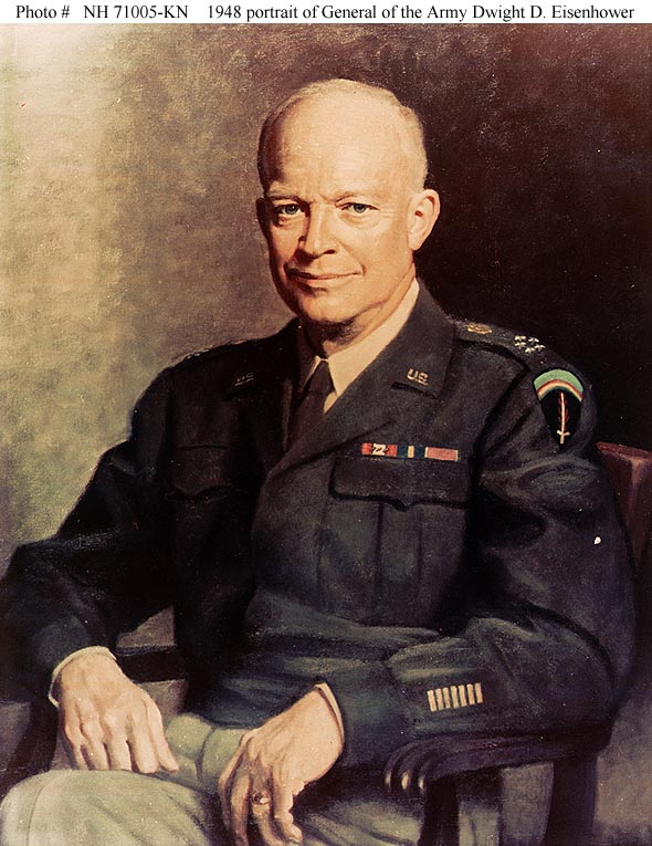 Photo #: NH 71005-KN (color) General of the Army Dwight D. Eisenhower, Chief of Staff, U.S. Army Official portrait, dated 8 June 1948. Official U.S. Army Photograph, from the collections of the Naval Historical Center. Online Image: 105KB; 590 x 765 pixels |