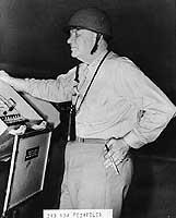 Photo #: 80-G-445016 Admiral William M. Fechteler, USN, Chief of Naval Operations (center) Talks with Major General John Seldon, USMC, during the CNO's visit to the First Marine Division in Korea. Vice Admiral Robert P. Briscoe, USN, Commander Naval Forces Far East, is at right. Photo is dated 18 July 1952. Official U.S. Navy Photograph, now in the collections of the National Archives. Online Image: 120KB; 600 x 765 pixels Reproductions of this image may also be available through the National Archives photographic reproduction system. |