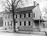 Photo #: NH 48244 Birthplace of Captain James Lawrence, USN (1781-1813) Photograph taken during the 1940s of the double house in Burlington, New Jersey, where James Lawrence was born on 1 October 1781. The author James Fenimore Cooper was born in the house on the left. Courtesy of the Public Information Office for the Department of Conservation and Economic Development, State of New Jersey. U.S. Naval Historical Center Photograph. Online Image: 167KB; 740 x 590 pixels |