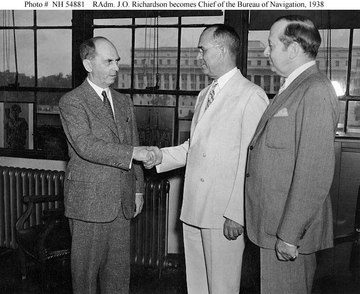 Photo #: NH 54880 Rear Admiral James O. Richardson, USN Photographed while serving as Chief of the Bureau of Navigation, 1938. U.S. Naval Historical Center Photograph. Online Image: 52KB; 600 x 765 pixels |