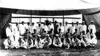 Photo #: NH 95636 Naval Aviation Camp, Guantanamo Bay, Cuba Camp personnel, circa January-March 1913, during Naval aviation's first fleet "deployment". Officers present are (left-to-right): Lieutenant(Junior Grade) Patrick N.L. Bellinger, USN; First Lieutenant Bernard L. Smith, USMC; First Lieutenant Alfred A. Cunningham, USMC; Lieutenant John H. Towers, USN; Ensign Victor D. Herbster, USN; Ensign William D. Billingsley, USN; Ensign Godfrey deC. Chevalier, USN. Note goat and dog mascots and canvas hangar with a Curtiss "A" type airplane inside. Courtesy of the Naval Historical Foundation; Collection of Commander Theodore G. Ellyson. U.S. Naval Historical Center Photograph. Online Image: 93KB; 740 x 440 pixels |