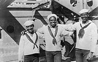 This page features pictures of African-Americans in the Navy during and after World War I, as the process of shutting them out of all rates except those of the Steward Branch reached completion.