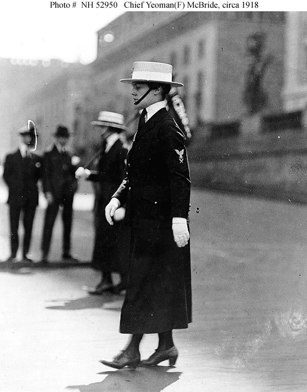 This page, and those linked from it, feature views of individual Yeomen (F) in uniform, both standard and non-standard, and provide links to other images of particular uniform variations. Close examination of other photographs in other parts of our Yeoman (F) will reveal other variations, as well as the wearing of the standard uniform.