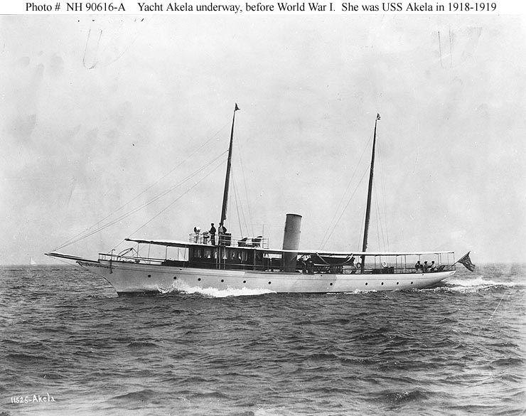 This page features our only view of the steam yacht Akela, which was USS Akela (SP-1793) in 1918-19.