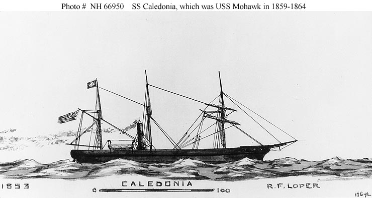 This page features our the only view we have related to the steamship Caledonia (1853-1869), which was USS Mohawk in 1859-1864.