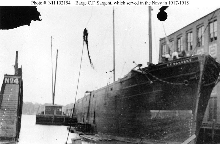 C.F. Sargent, a 1689-gross-ton wooden schooner barge, was built in 1874 at Yarmouth, Maine. She was acquired by the Navy in October 1917, placed in service as USS C.F. Sargent and employed to transport coal along the East Coast. Later given the registry number 3027, the barge sank at sea on 31 July 1918.