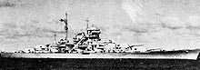 Photo #: NH 69732 German battleship Bismarck Photographed from the heavy cruiser Prinz Eugen on 24 May 1941, following the Battle of the Denmark Strait and before the two German ships separated. Bismarck is somewhat down by the bow, the result of hits received in her engagement with HMS Prince of Wales and HMS Hood earlier in the day. This is the next to last photograph of Bismarck taken by the Germans. Copied from the report of officers of Prinz Eugen, with identification by her Gunnery Officer, Paul S. Schmalenbach, 1970. U.S. Naval Historical Center Photograph. Online Image: 83KB; 740 x 470 pixels |